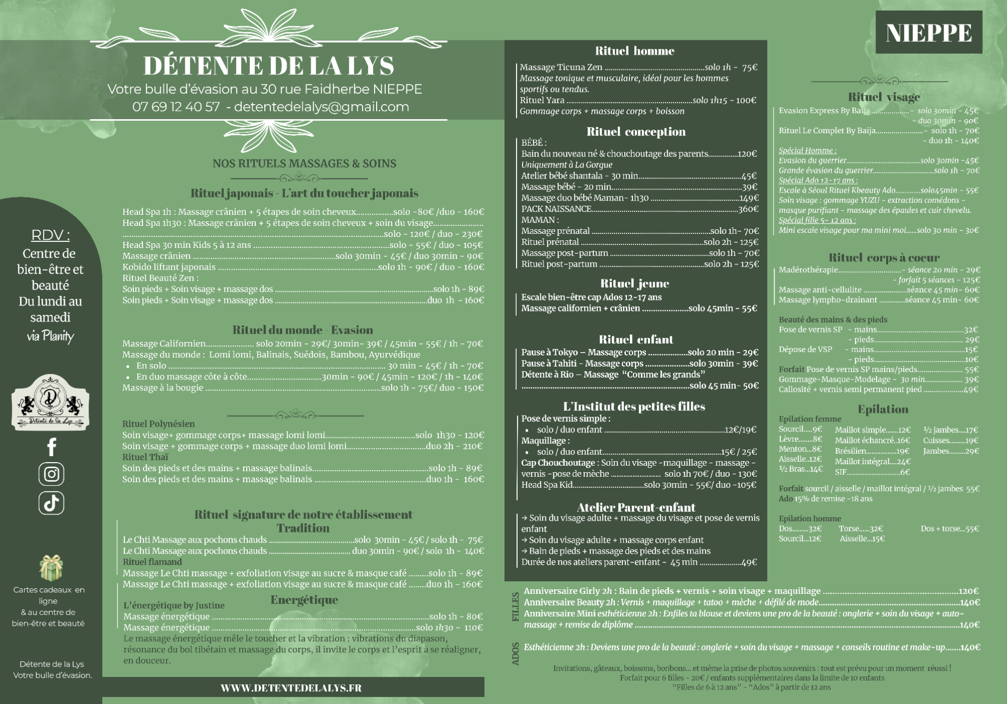 Découvrez nos rituels soins bien-massage & beauté à NIEPPE : Massage solo, duo, Head Spa, Soin du visage, selon les inspirations du monde ....